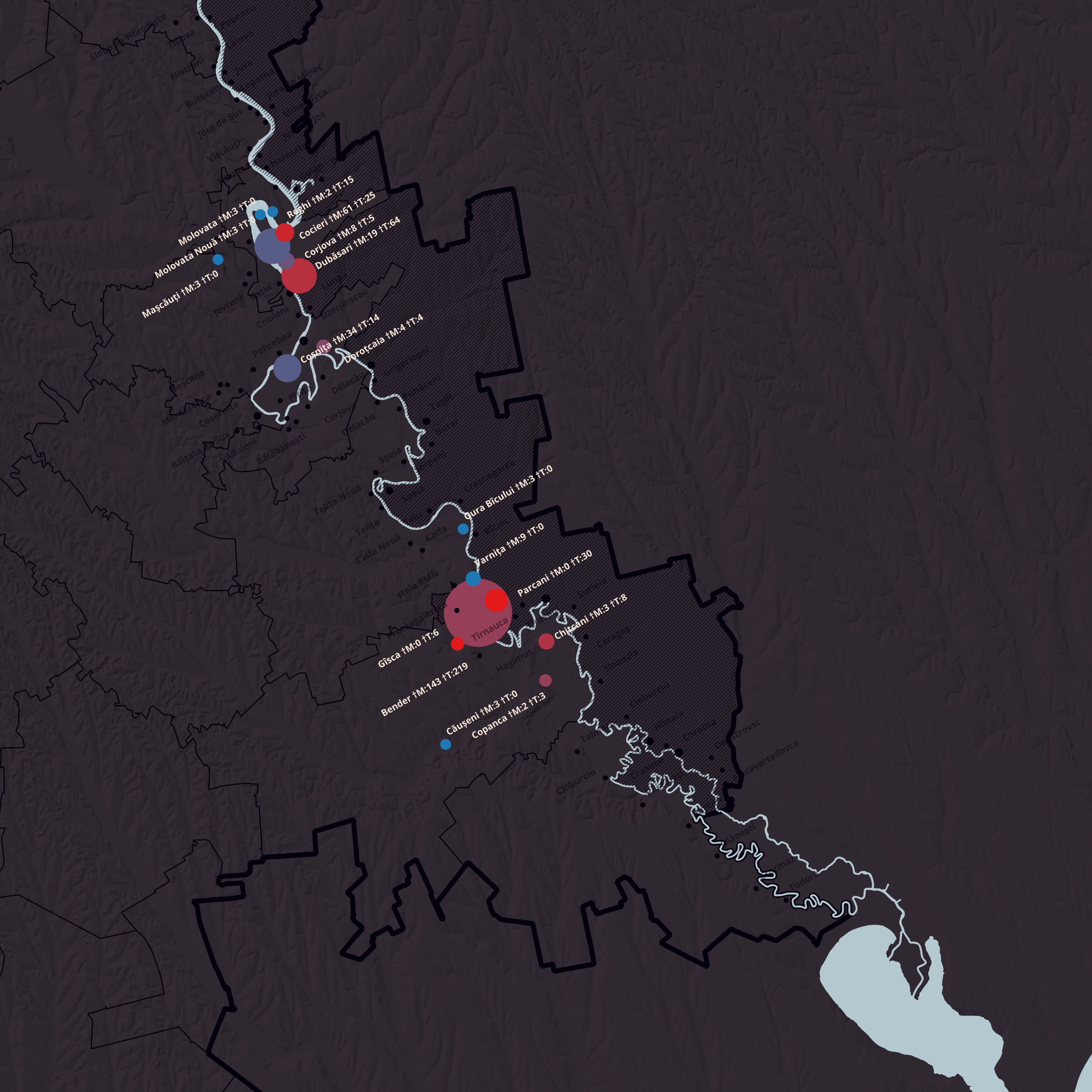 The map of the Nistru River provides a visual representation of the casualties suffered by the Moldovan (blue) and Transnistrian (red) sides during the 1992 war.